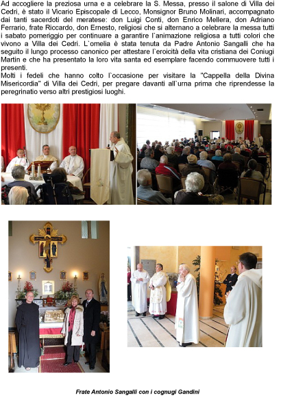02.01.2009 - Villa dei Cedri ha accolto l'urna dei coniugi Martin