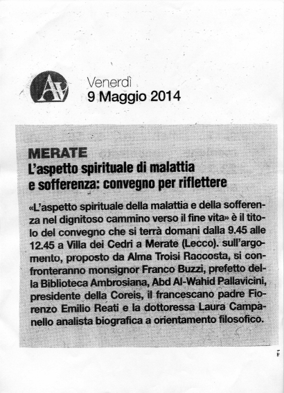 • 09.05.2014 - Convegno: spiritualità, sofferenza, fine vita
